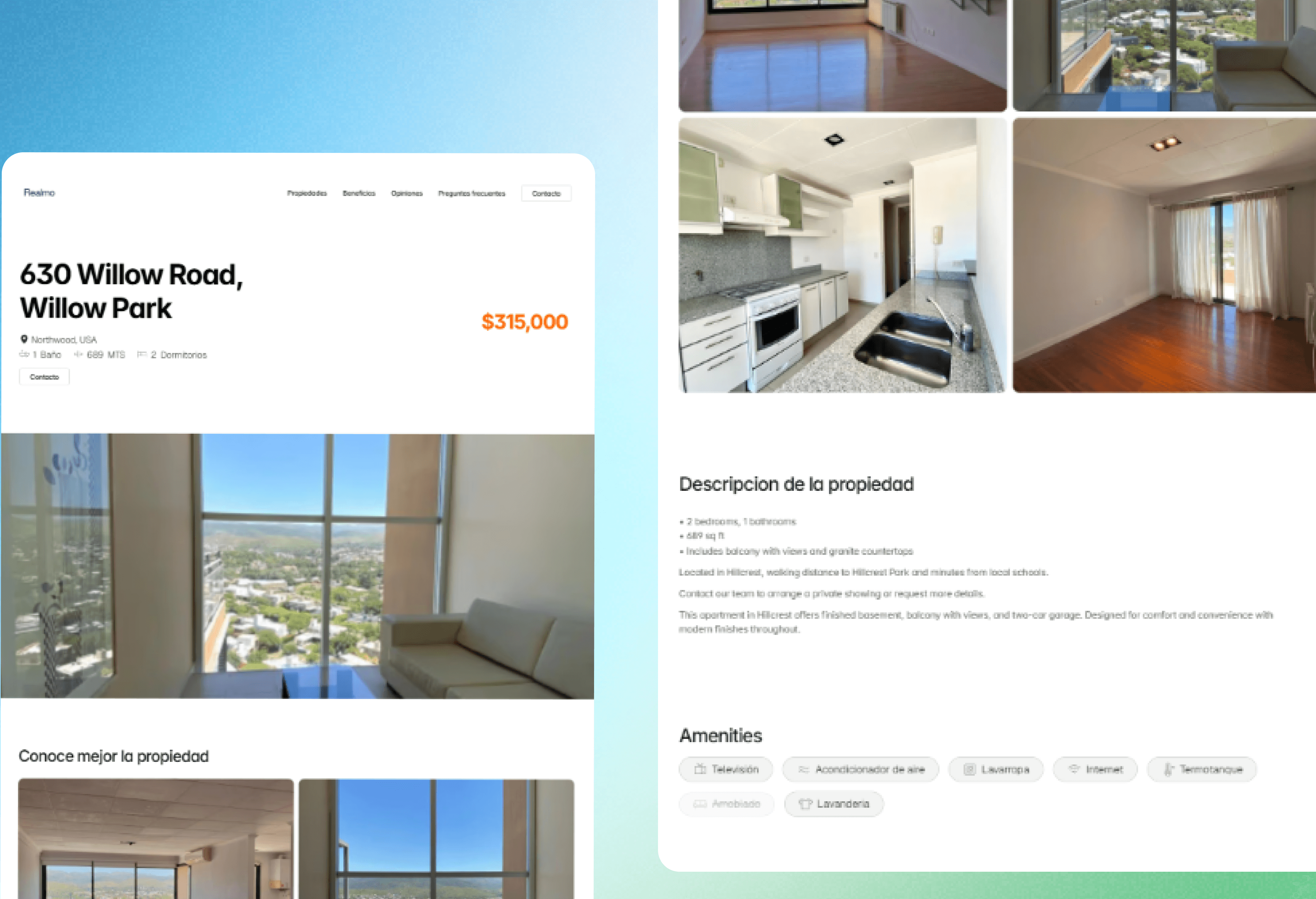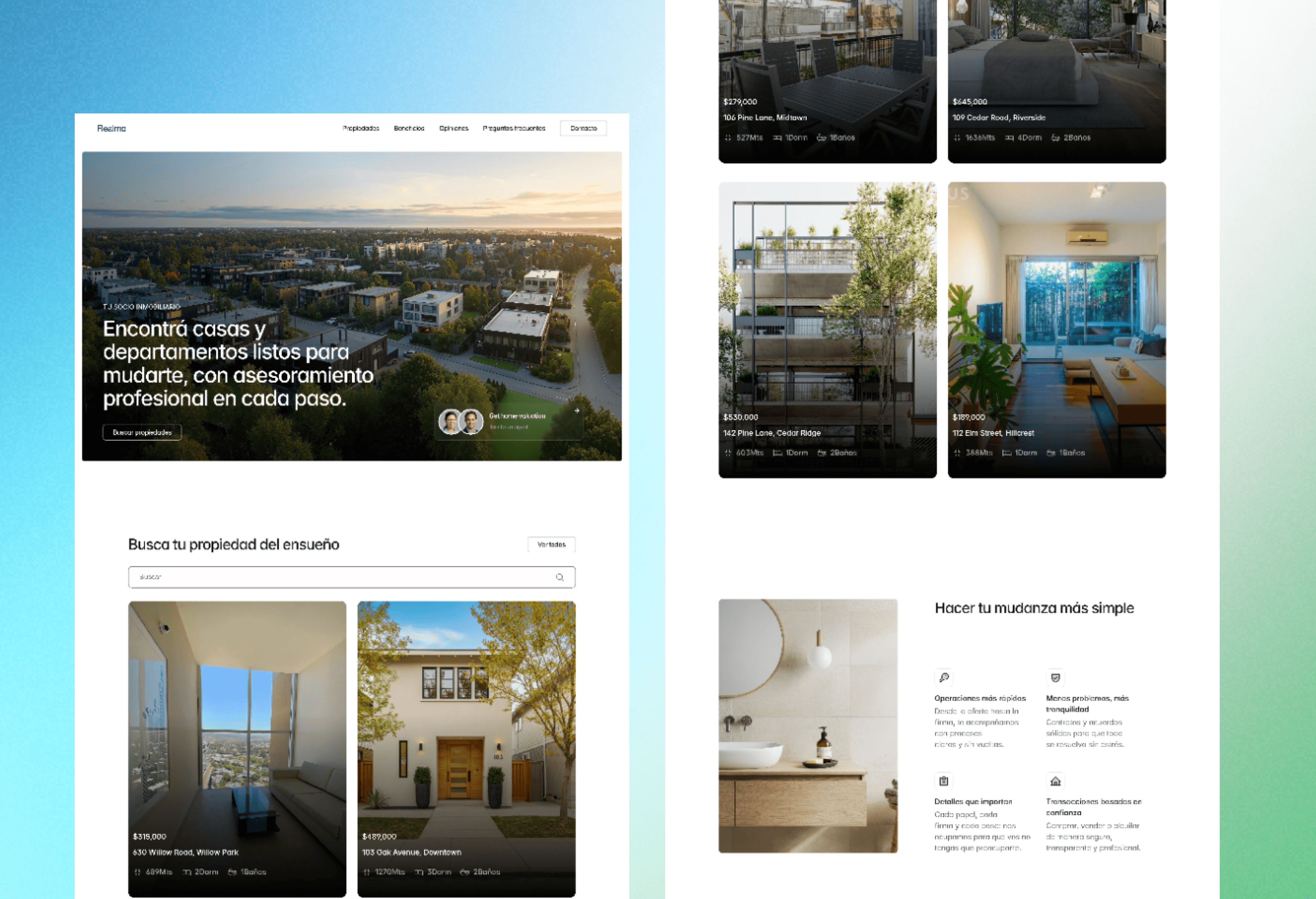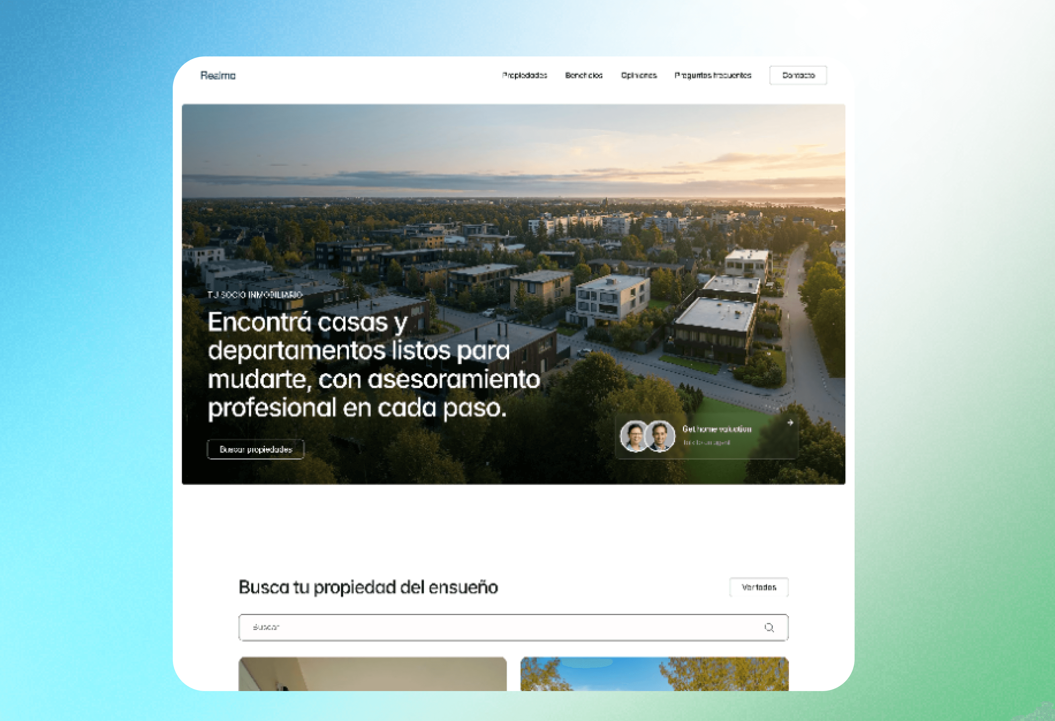 El nuevo portal inmobiliario fue un éxito al fusionar diseño y tecnología: Mejora en la Conversión: El diseño de la página de detalle de la propiedad (con calls to action claros) resultó en un incremento del 25% en las solicitudes de contacto y citas. Velocidad y Percepción: La implementación en Framer resultó en tiempos de carga excepcionalmente rápidos, lo que se tradujo en un aumento del 15% en el tiempo promedio de permanencia del usuario en el sitio. Feedback Positivo: Los agentes inmobiliarios elogiaron la facilidad de uso del sistema de carga de propiedades y la presentación visual superior de sus listados.