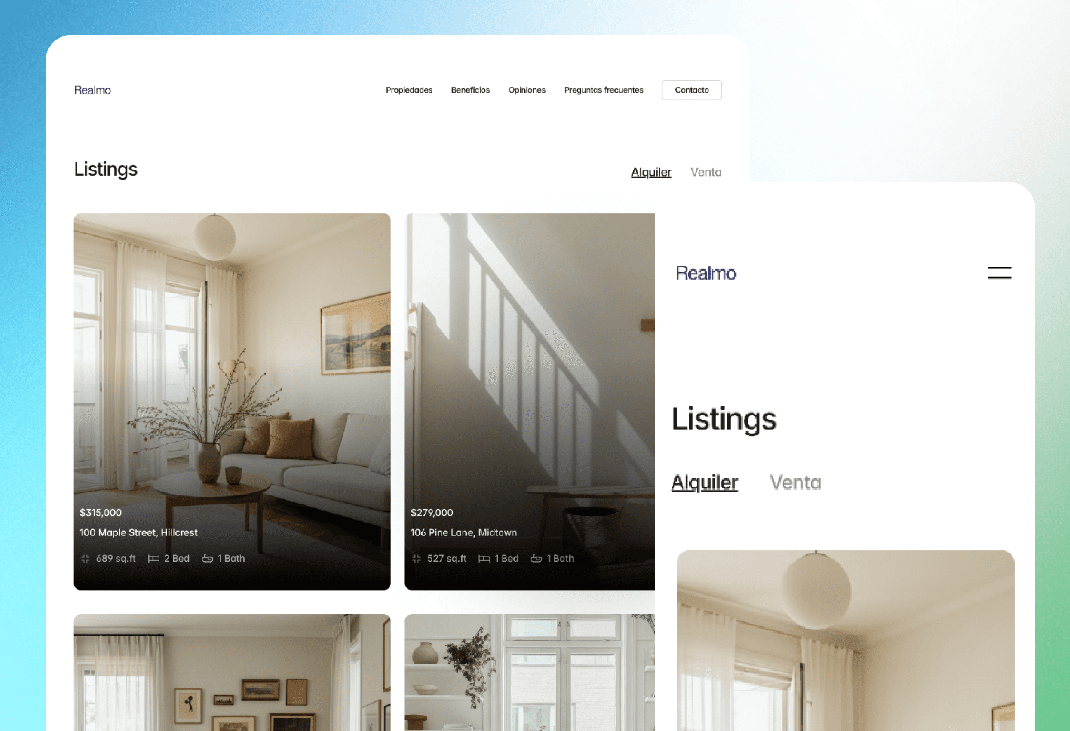 El mercado inmobiliario en línea a menudo está dominado por sitios web con diseños obsoletos, lentitud en la carga y sistemas de filtrado complejos que frustran a los usuarios. El principal desafío era doble: Usabilidad y Velocidad: Crear una experiencia de búsqueda extremadamente rápida e intuitiva, especialmente en dispositivos móviles, para retener al usuario. Diferenciación Visual: Diseñar una interfaz limpia y atractiva que mostrara las propiedades de manera profesional, posicionando al cliente como una opción moderna y confiable frente a los grandes portales.